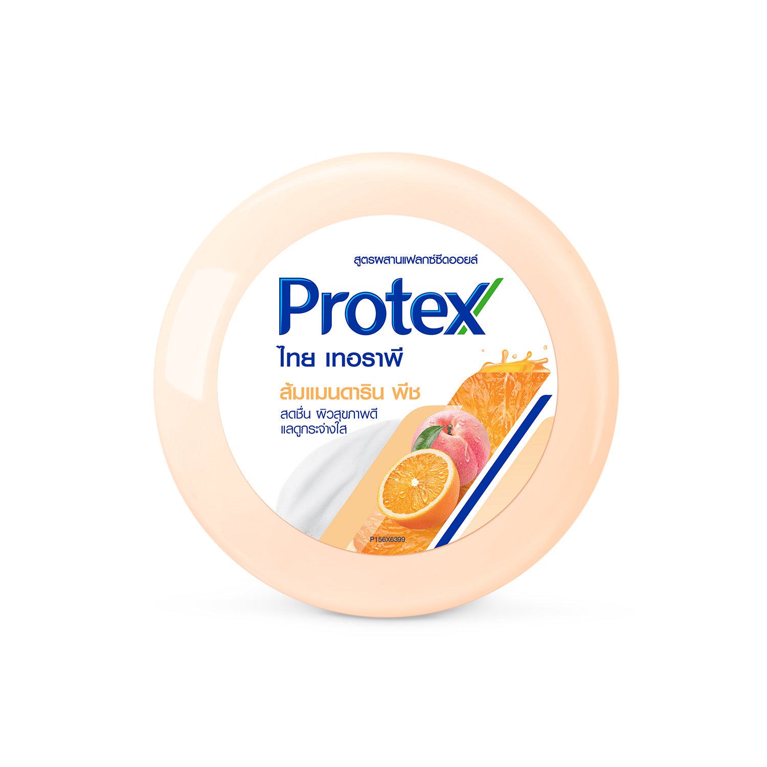 สบู่โฟมก้อนสมุนไพร โพรเทคส์ ไทย เทอราพี สูตร ส้มแมนดาริน พีช ผลิตภัณฑ์ทำความสะอาดผิวใหม่ล่าสุดจาก Protex สบู่วิตามินซี ผสานคุณค่าของส้มแมนดารินและพีช ให้กลิ่นหอมสดชื่นยาวนาน พร้อมช่วยให้ผิวกระจ่างใสสุขภาพดี มาพร้อมฟองโฟมให้ผิวเนียนนุ่ม ไม่เอี๊ยด เมื่อใช้เป็นประจำอย่างต่อเนื่อง